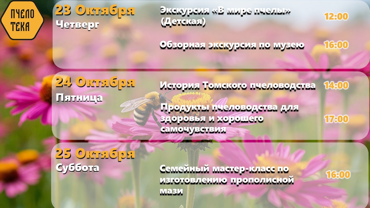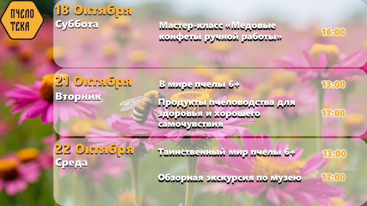 Друзья, Музей Мёда и Томского пчеловодства "Пчелотека" рад представить анонс мероприятий на октябрь!