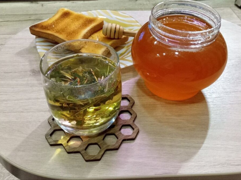 Напиток из плодов шиповника и ромашки с мёдом.