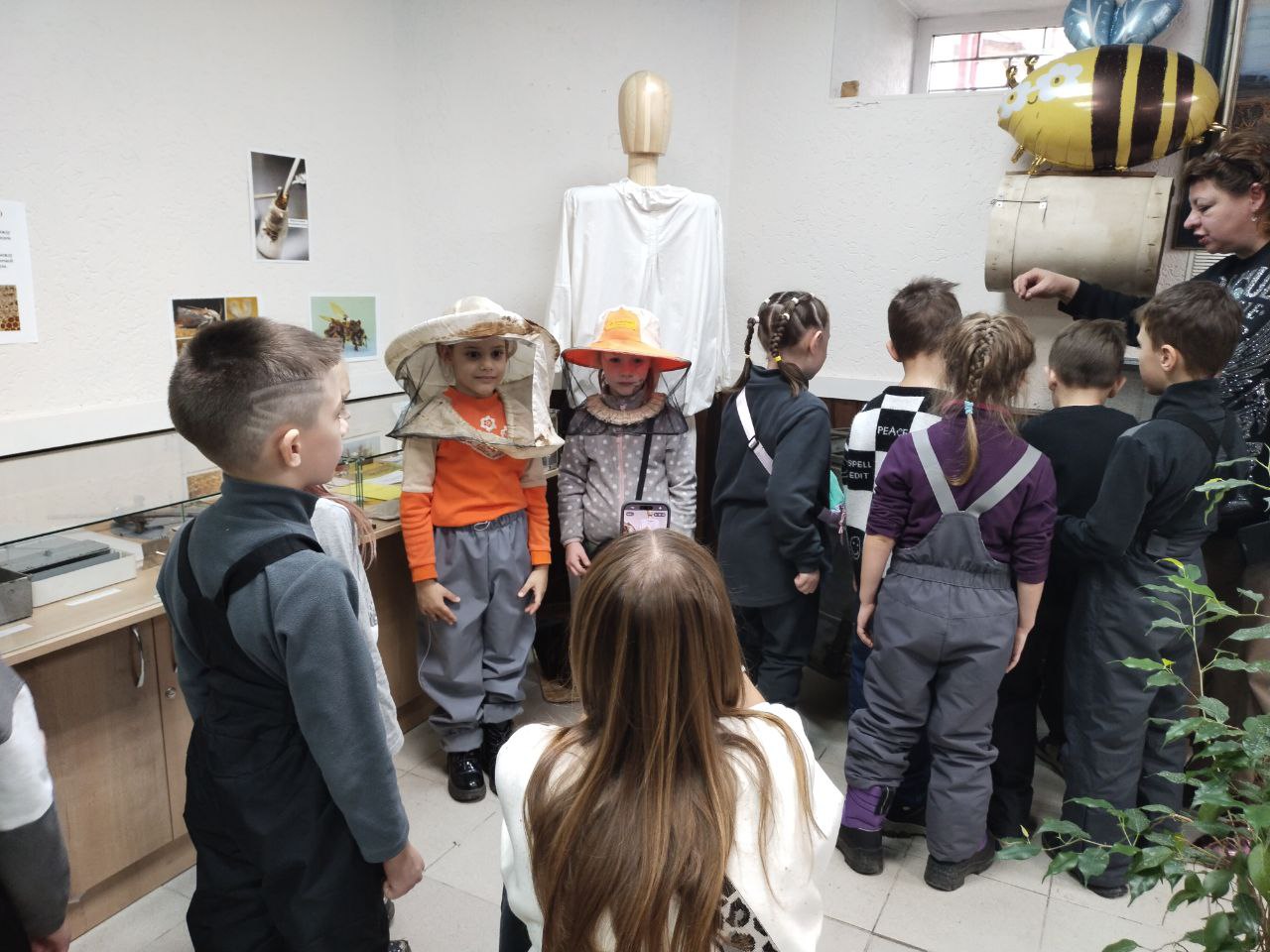 Во втором зале, их взорам предстало гнездо шершня, узнали, кто числится в друзьях у пчёл, а кто — во врагах, и отчего бабочка со зловещим именем «Мёртвая голова» обретает запах пчелиной матки. С особым, азартом крутили они ручку медогонки, с любопытством примеряли на себя лицевые сетки пчеловодов, разглядывали и трогали пчелиные соты.