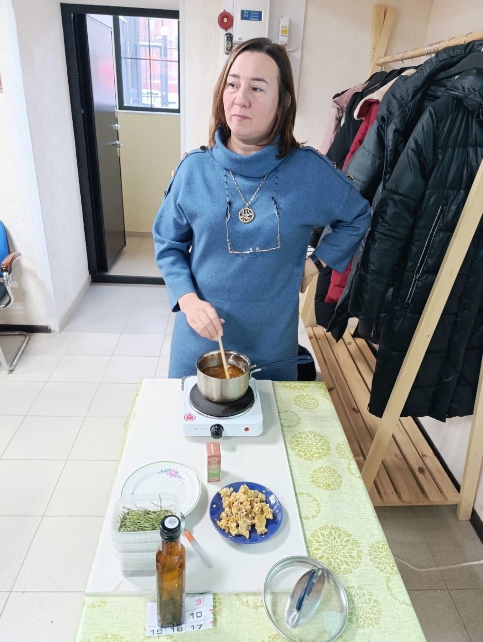 Пока в масле на водяной бане настаивался целебный прополис для будущей мази,мы с головой ушли в творческий процесс. А после — завели не менее увлекательную беседу о рецептах. Мы не только разобрали классический способ приготовления мази, но и обсудили, какие натуральные ингредиенты можно добавить для разных целей — например, если беспокоят суставы. Получился настоящий обмен ценными знаниями!