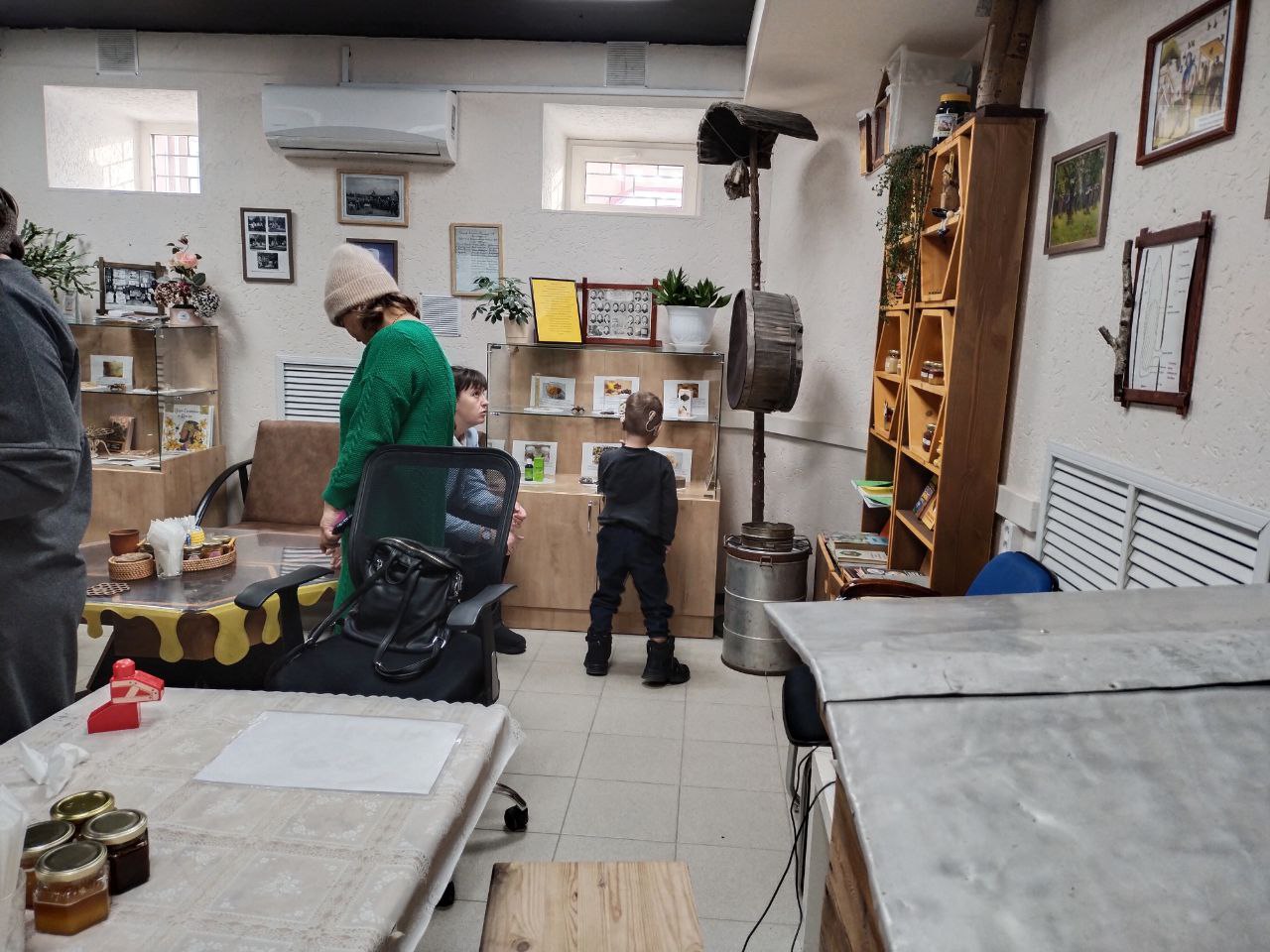 Но не одним лишь слушанием ограничилось. Детворе дали покрутить медогонку — занятие, от которого щёки зарумянились от усердия. Примеряли они и шляпы пчеловодов, держали в руках дымарь, этот важный инструмент, похожий на волшебный светильник из старинной сказки.